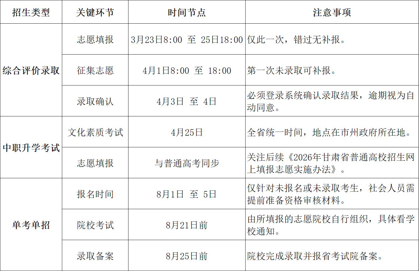 根据您提供的《关于做好2026年甘肃省高等职业教育分类考试招生工作的通知》及附件,我为您整理了考生和家长最关心的核心要点,以清晰明了的方式呈现如下: