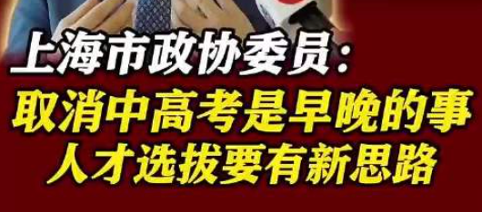 根据媒体报道,这位委员核心观点主要是:第一,伴随出生人口大幅下降,教育资源供给过剩,未来取消中高考是必然的;第二,对于中高考改革,提出通过“科创项目搭配+实践能力测试+综合素质评价”的新模式,打破唯分数论的局限。