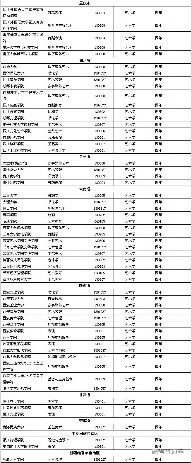 2020年起部分高校的艺术类专业已被撤销,如西安美术学院的舞蹈学,服装设计与工程,云南大学的服装与服饰设计,数字媒体艺术等。