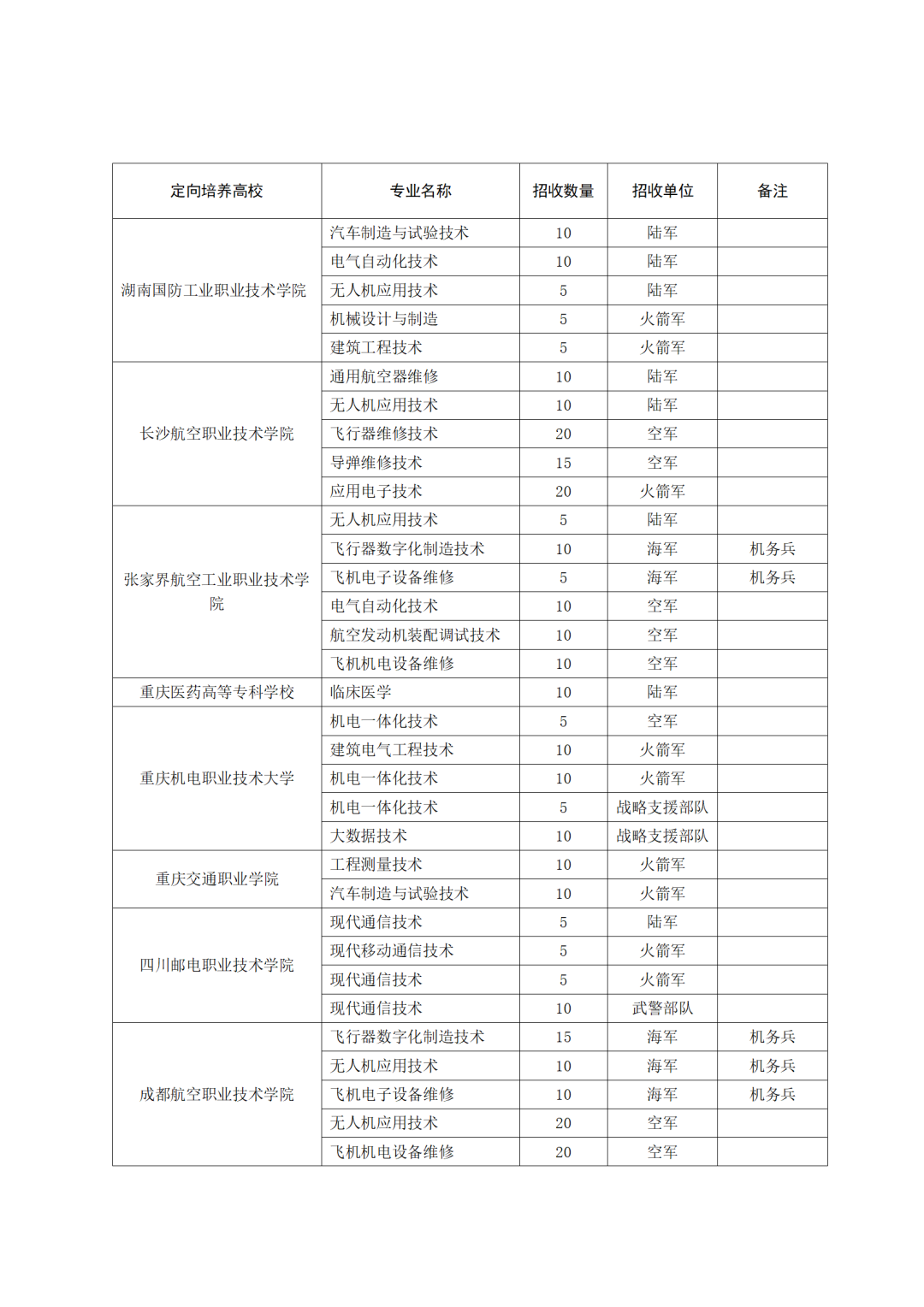 根据国家教育部、军委政治工作部、军委国防动员部《关于做好2021年招收定向培养士官工作的通知》要求,为深入贯彻军民融合发展战略,着力培养军队建设需要的高素质士官人才,现就2021年我省招收定向培养士官工作有关问题公告如下: