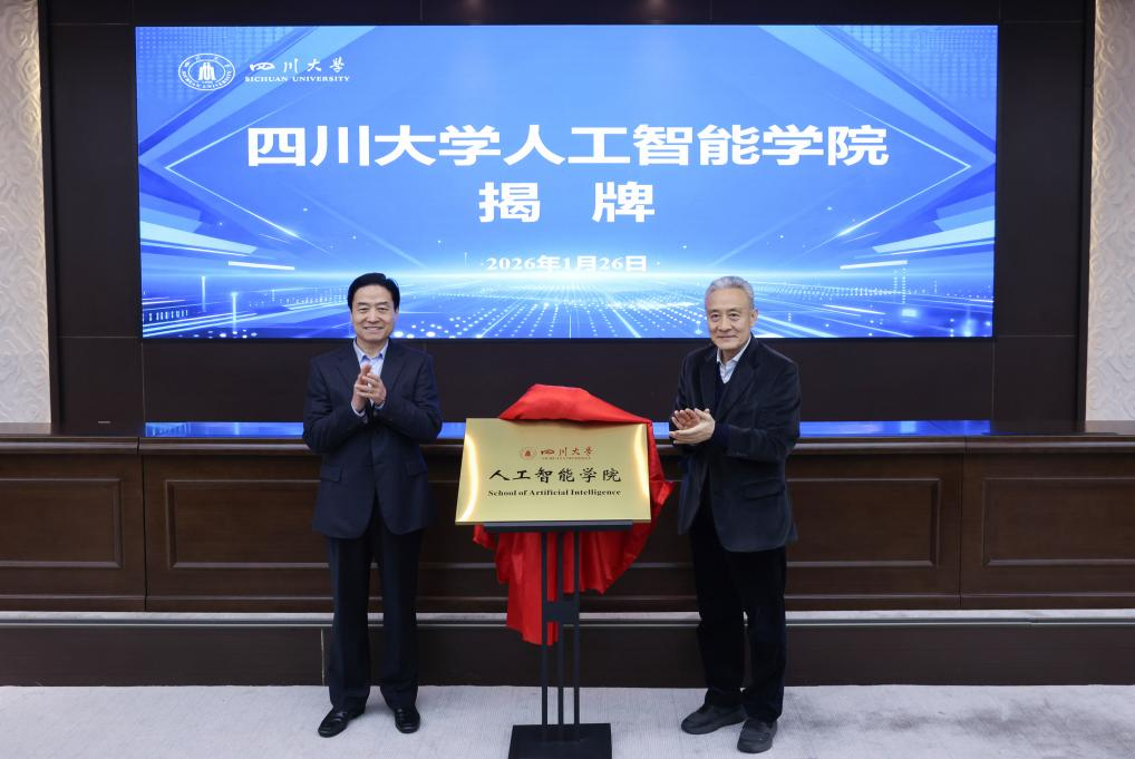 1月26日,四川大学人工智能学院揭牌仪式在望江校区明德楼举行。四川大学党委书记甘霖、校长汪劲松等全体校领导,各单位主要负责人,师生代表等参加仪式。甘霖、汪劲松为“四川大学人工智能学院”揭牌。